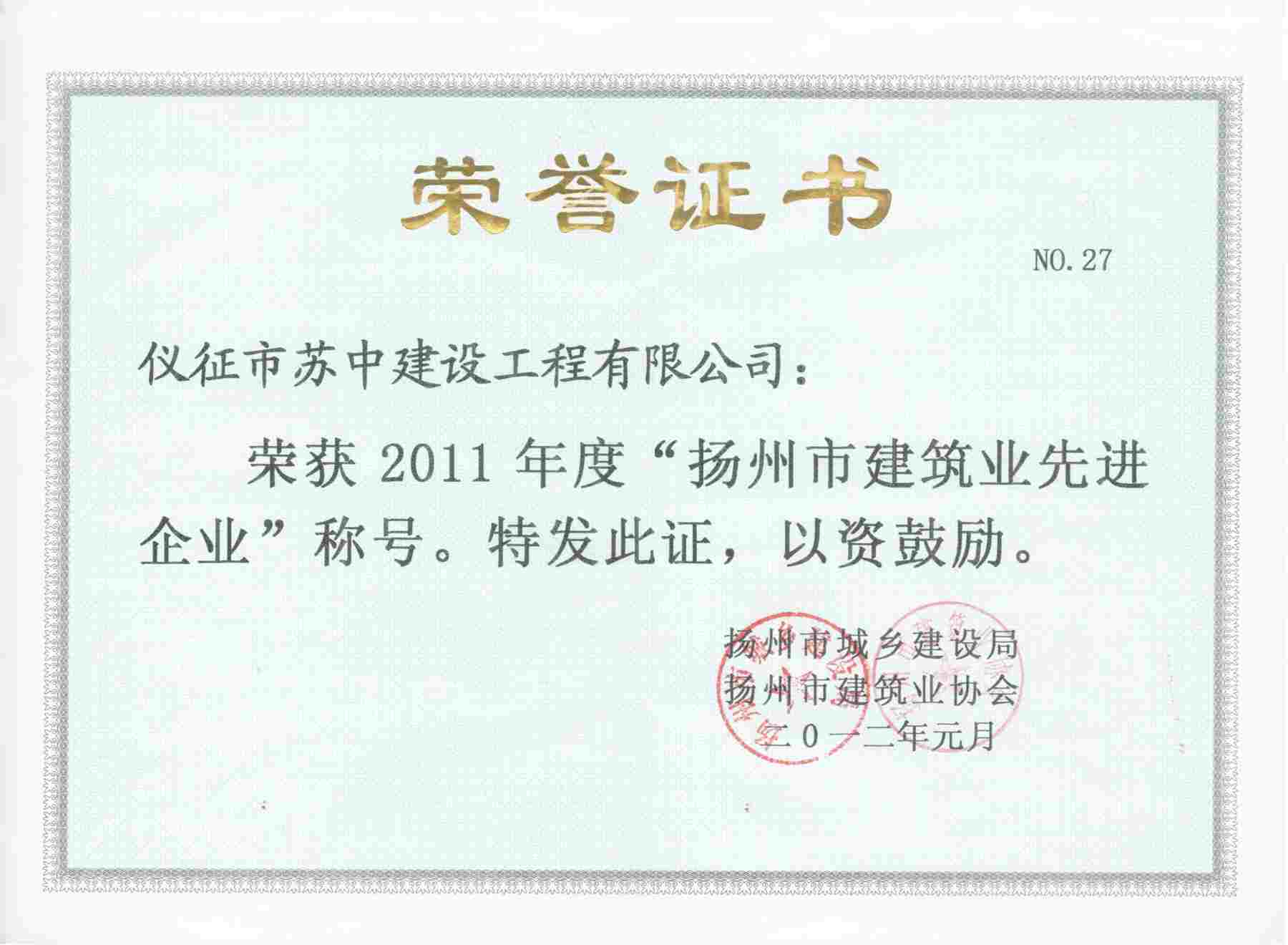 2011年揚(yáng)州市先進(jìn)企業(yè)