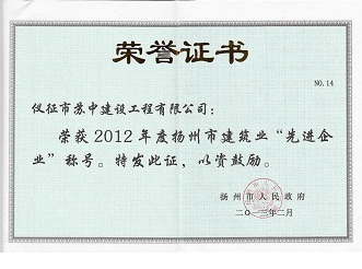 2012年揚(yáng)州市先進(jìn)企業(yè)