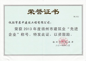 2013年揚(yáng)州市先進(jìn)企業(yè)