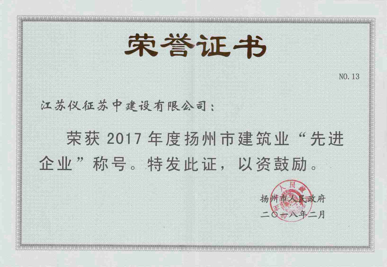 2017年度揚(yáng)州市建筑業(yè)“先…