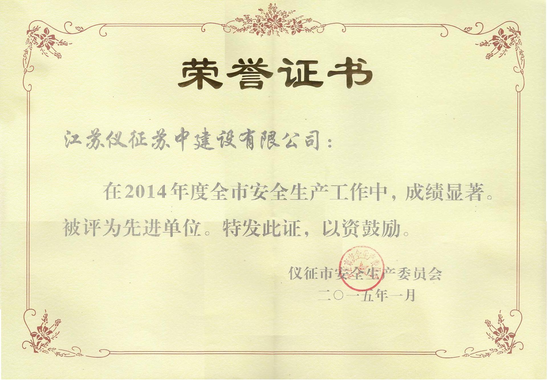 2014年儀征市安全生產(chǎn)先進…