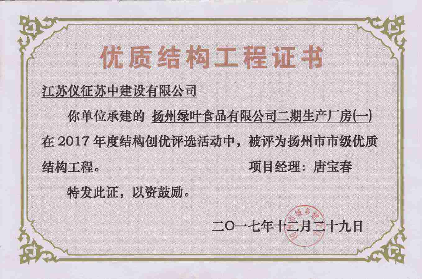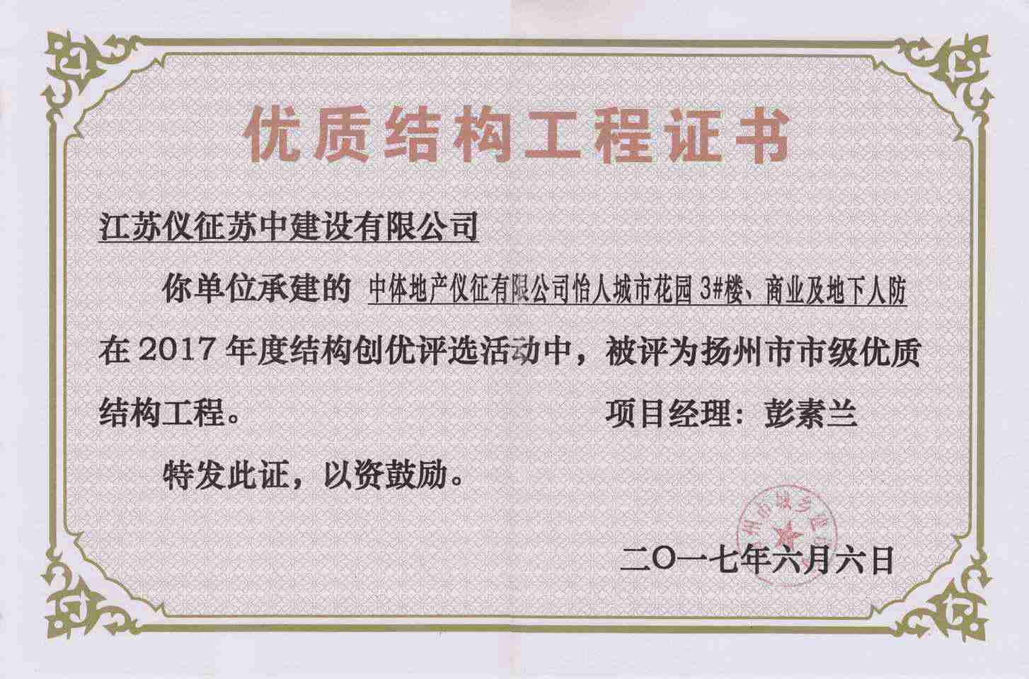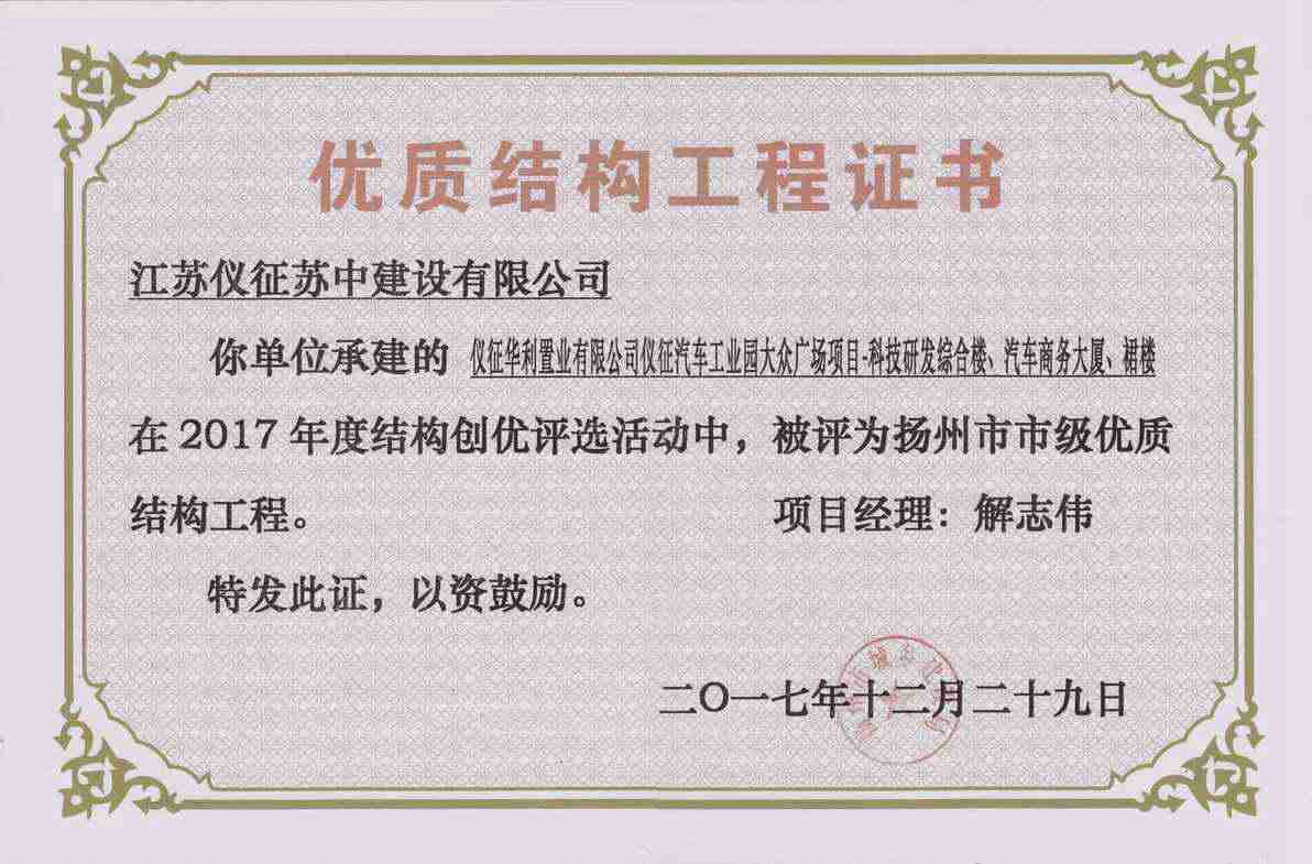 揚州市優(yōu)質(zhì)結(jié)構(gòu)工程