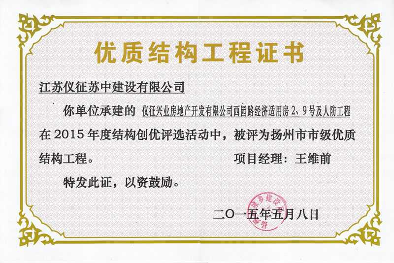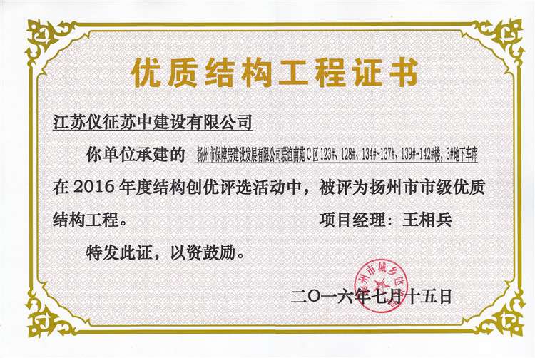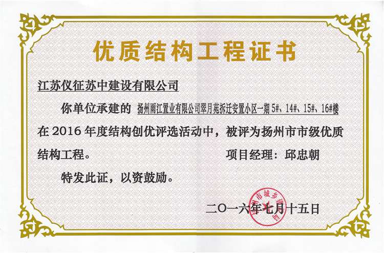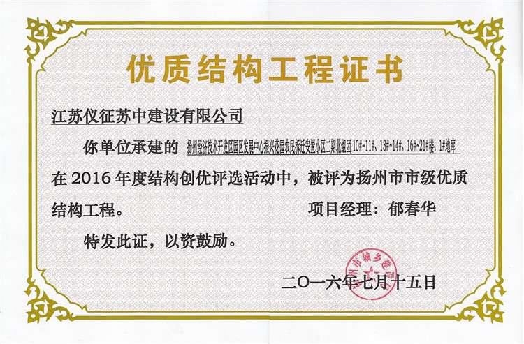 揚州市優(yōu)質(zhì)結(jié)構(gòu)工程