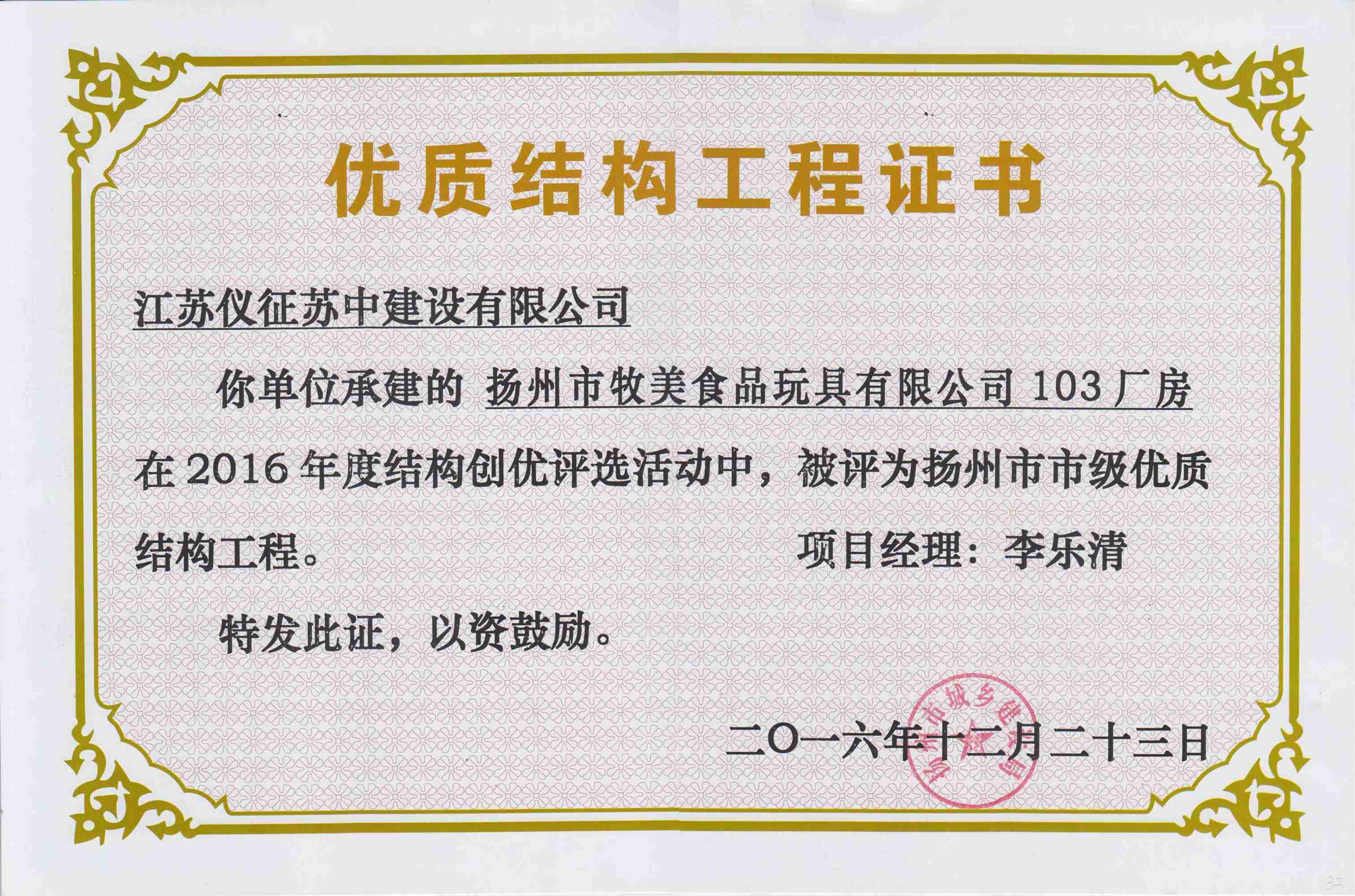 揚州牧美103廠房2016年度第…