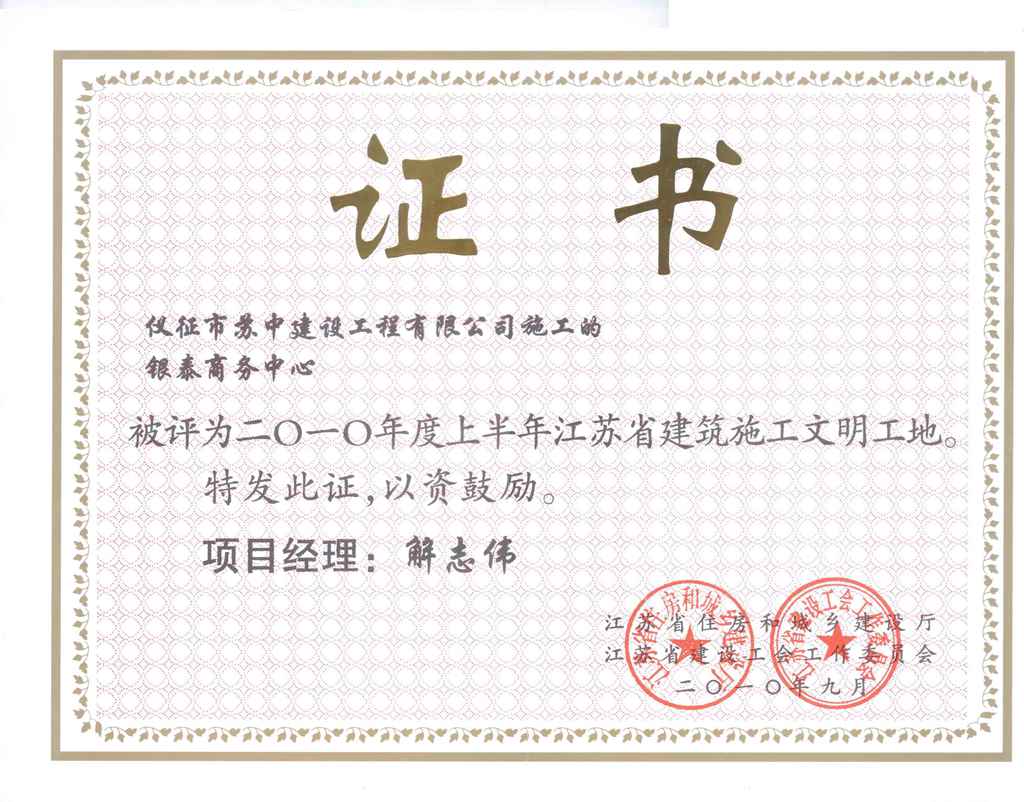 銀泰2010年文明工地