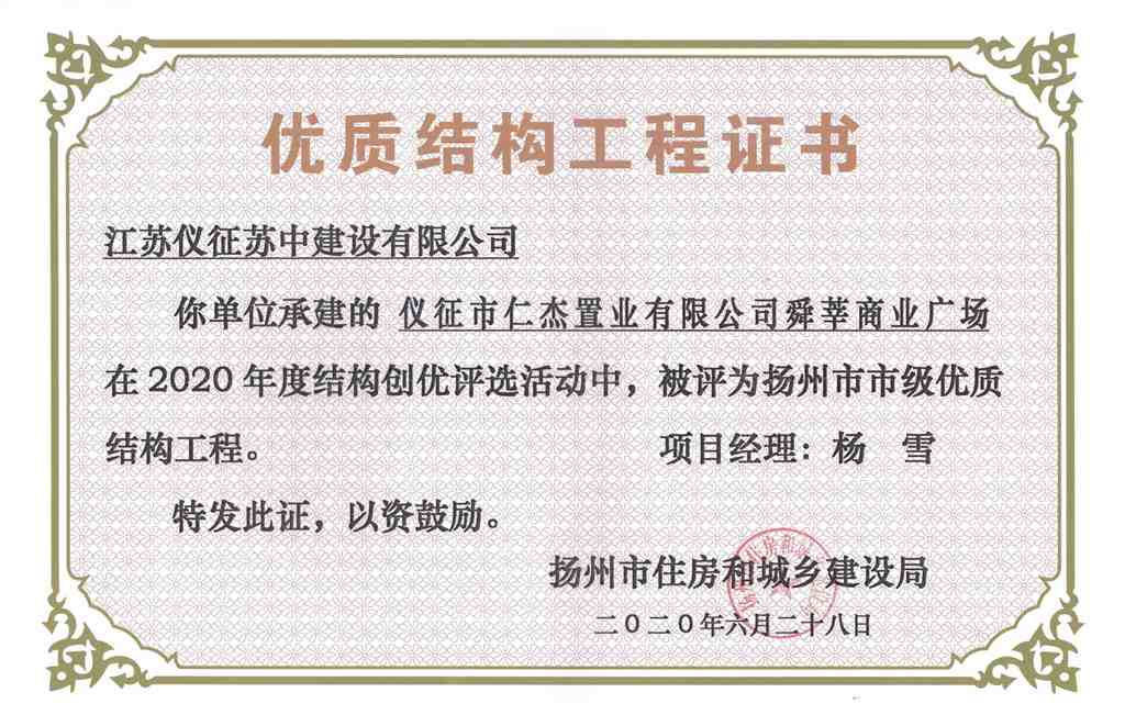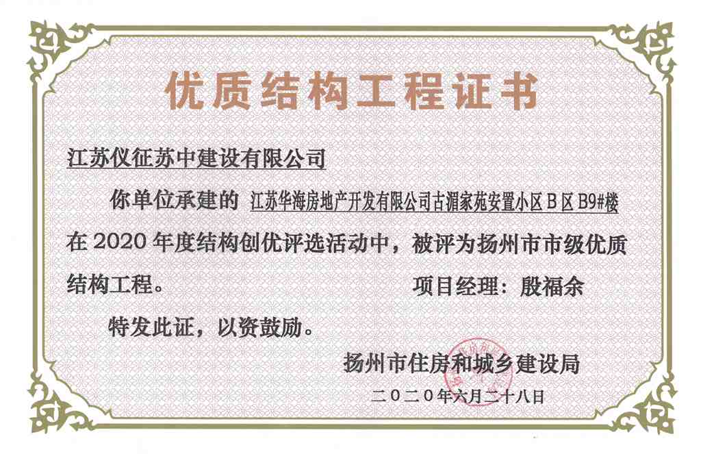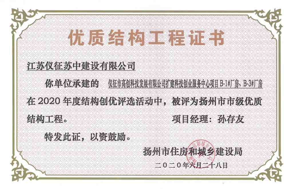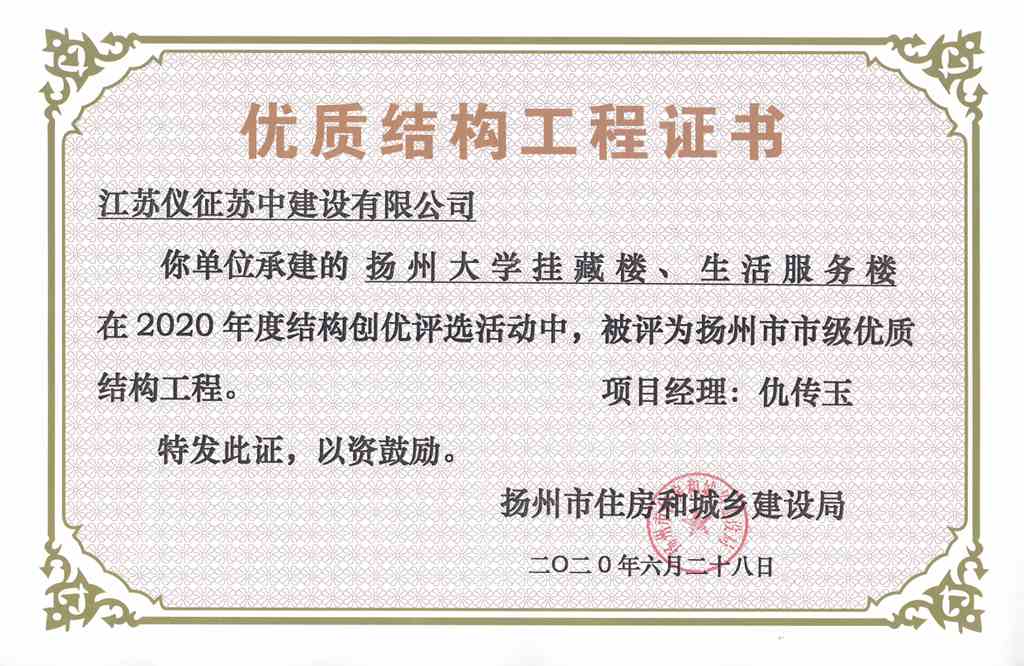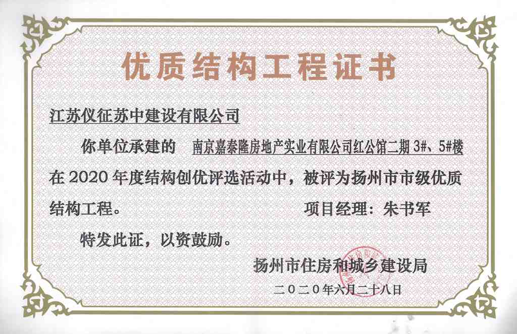 2020年度揚(yáng)州市優(yōu)質(zhì)結(jié)構(gòu)工…