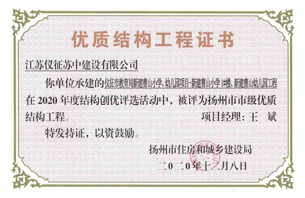 揚(yáng)州市優(yōu)質(zhì)結(jié)構(gòu)工程