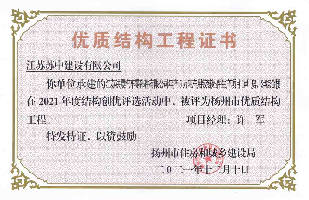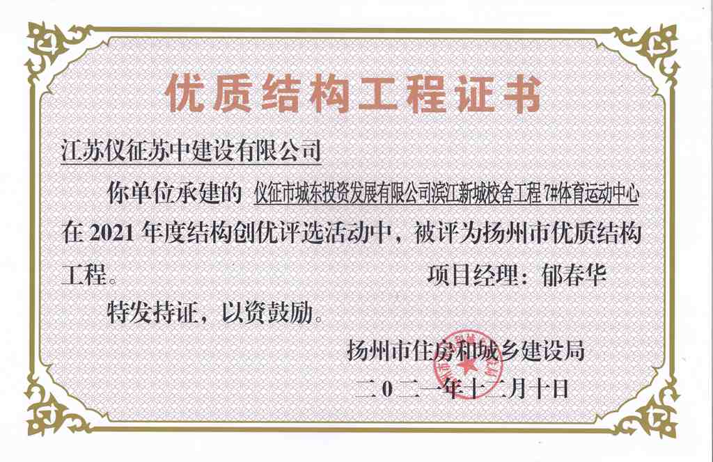 2021年度揚(yáng)州市優(yōu)質(zhì)結(jié)構(gòu)工…