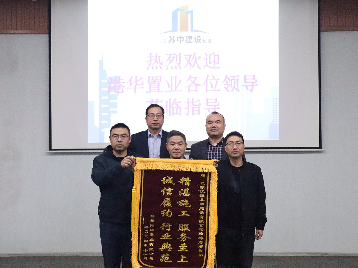 2024年11月7日上午,我公司迎來了揚(yáng)州港華置業(yè)有限公司姚惠忠總經(jīng)理一行的特別拜訪,公司總經(jīng)理解志偉給予了熱情接待。在熱烈的氣氛中,姚惠忠總經(jīng)理向公司贈送了一面繡有“精湛施工、服務(wù)至上、誠信履約、行業(yè)典范”字樣的錦旗,表達(dá)了對公司翰林府項(xiàng)目部在項(xiàng)目建設(shè)中表現(xiàn)出的卓越品質(zhì)和優(yōu)良服務(wù)的肯定和感謝。