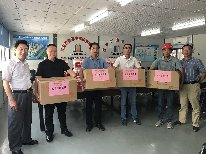 入夏以來,公司領導高度重視夏季安全生產和防暑降溫工作。近日,公司黨支部、質量部及安全部聯(lián)合開展“夏季送清涼”慰問活動,購置了大麥茶、白砂糖、礦泉水、仁丹、風油精等防暑降溫用品,先后前往濱江新城校舍、北斗星城、安徽全椒御賓府等項目現(xiàn)場開展慰問活動。
